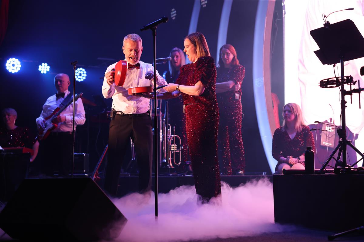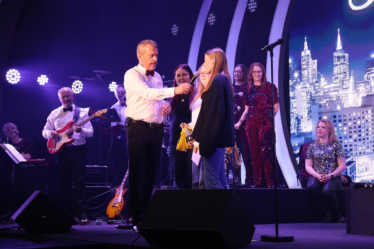 Konferansier Harald Sætre stod for mykje av underhaldninga mellom innslaga. Han viste triks med alt frå egg og ballongar til pizza. Før maten vart servert, smilte han lurt frå scena og sa at alle måtte ete fire pølser før dei fekk gå laus på snacksen – noko som skapte latter i salen.